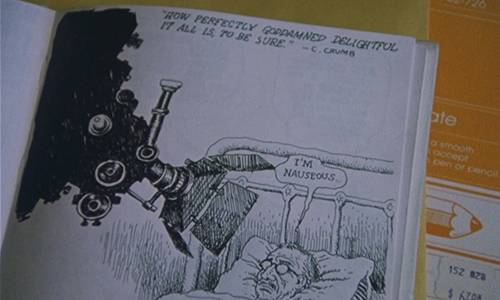 クラムの丸っこい絵柄、すべてがひとつになる世界そのものがドラッグの60年代の欲望だったとさえ言えるだろう。クラムは1965年(まだ合法だった時代)からLSDを摂取し、たびたびトリップをくりかえしていた。ミスター・ナチュラルやスノイドなどのキャラクターはLSDのトリップの中から生まれてきたものだという。抑圧をはねのけ、欲望を開放する。すべての欲望に忠実なミスター・ナチュラルこそ、60年代の無意識の発現だったのかもしれない。